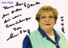 Leni Statz, am 10. Mai 1929 in Saalfeld / Thüringen geboren, war seit ihrer Kindheit dem Humor, der ihr anscheinend in die Wiege gelegt wurde, zugetan. Ihren ersten legendären Rundfunkauftritt hatte die gelernte Schuhfachverkäuferin am 27. Januar 1947 im „Meininger Hof“ in Saalfeld. Nach 10jähriger, erfolgreicher Amateurlaufbahn machte sie ihr Hobby 1957 zum Beruf, wurde Humoristin, Dialektkomikerin und schaffte es, binnen kurzer Zeit zur beliebtesten und erfolgreichsten Kinderstimmenimitatorin der DDR zu werden. Oft und gern erinnert sie sich an die Toleranz und Unterstützung ihres Ehemannes, der sie 45 Jahre liebevoll begleitete und dem sie es eigentlich verdankte, dass sie diesen Beruf so erfolgreich ausüben konnte.